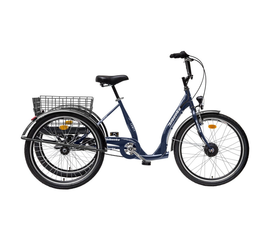 Trojkolka je vybavená elektromotorem integrovaným v předím náboji s výkonom 250W a maximální rýchlostí podpory 25km/h.