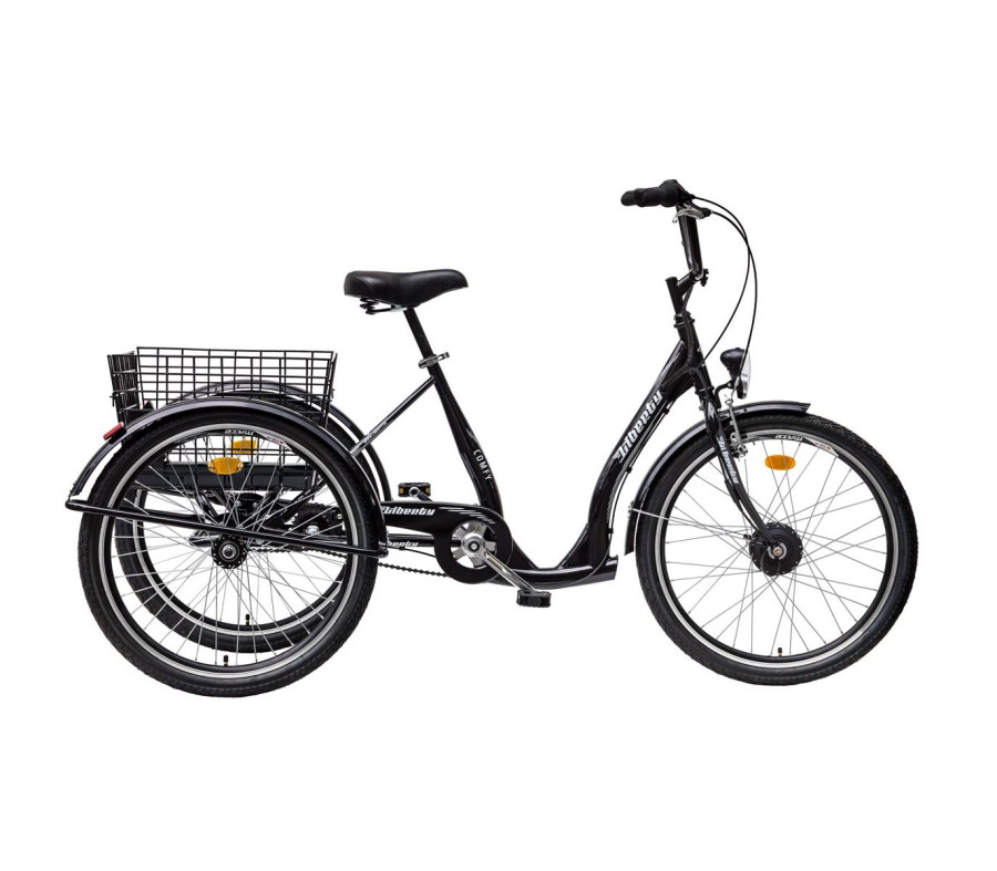 Trojkolka je vybavená elektromotorem integrovaným v předím náboji s výkonom 250W a maximální rýchlostí podpory 25km/h.