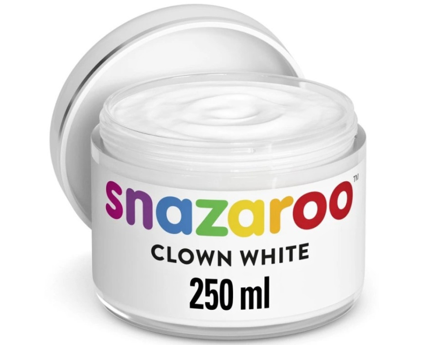 Velice kvalitní barva na obličej bílá klaunská, která se snadno se nanáší, výborně drží a neotírá se a lze ji snadno omývat. Splňuje nejvyšší kosmetické atesty. Je koncentrovaná, takže vystačí na mnoho použití.