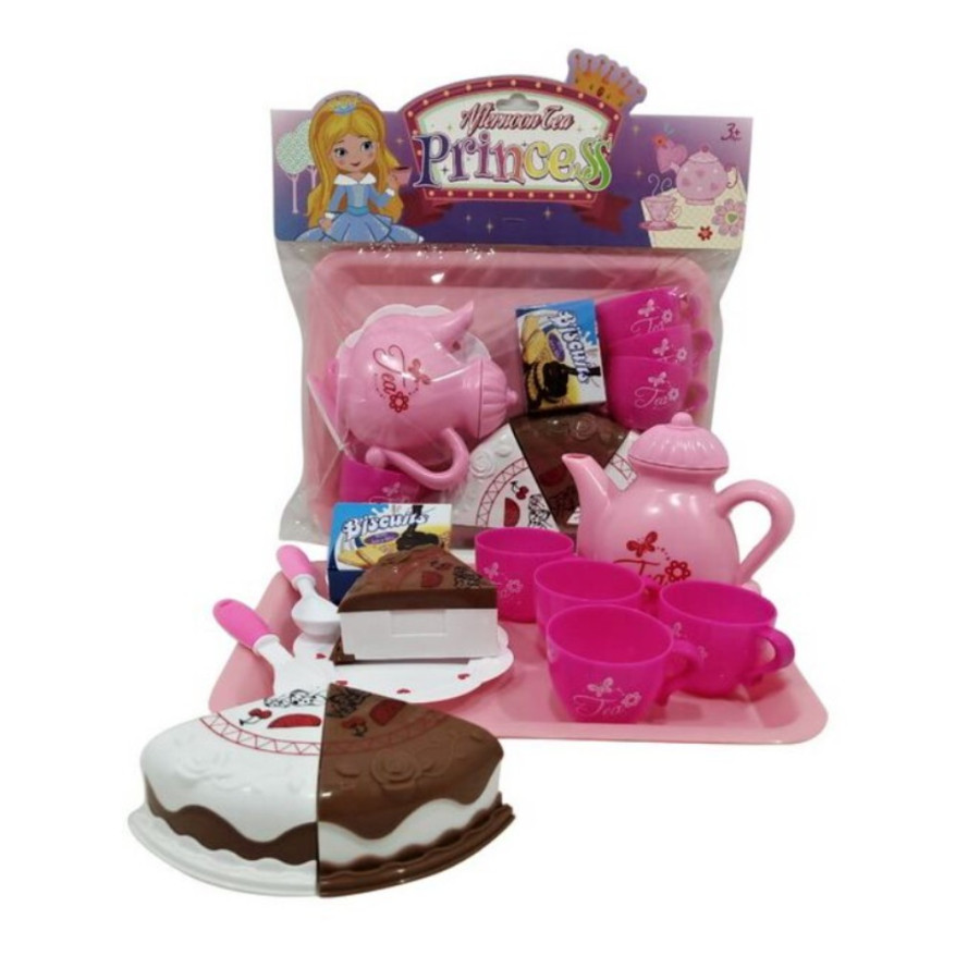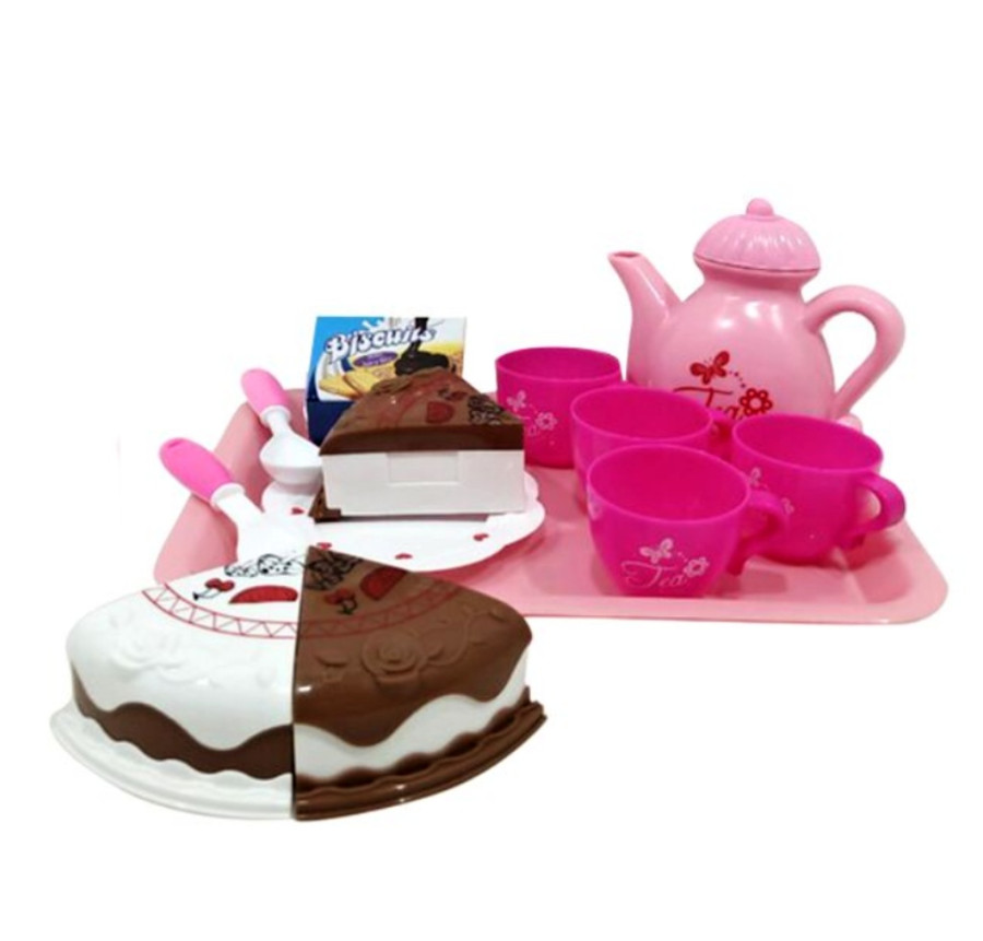 Sada dětského čajového servisu s dortem. Děti, je čas na čaj a dortík.....Hračka je vyrobena z plastu a neni vhodná pro děti do tří let věku. Jedná o hračku a neni určeno k jídlu.