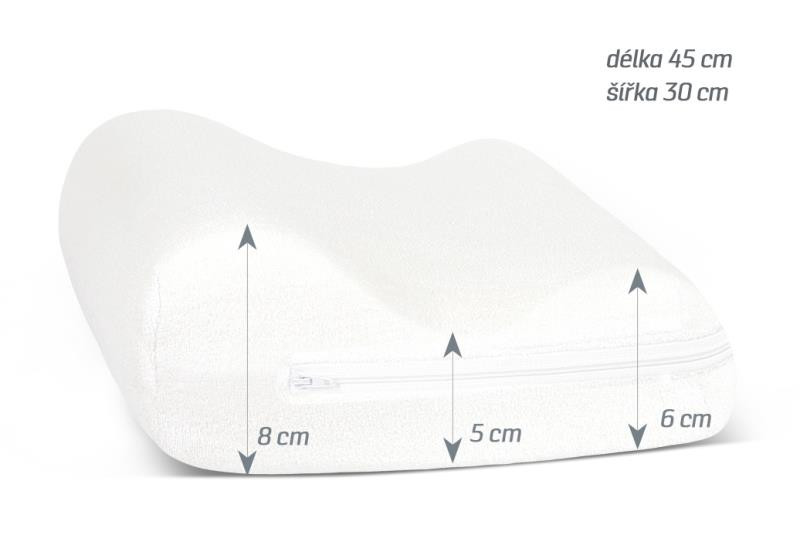 Při spánku i odpočinku udržuje páteř ve správné a přirozené poloze a uvolňuje krční svaly. Polštář se přizpůsobí poloze těla.