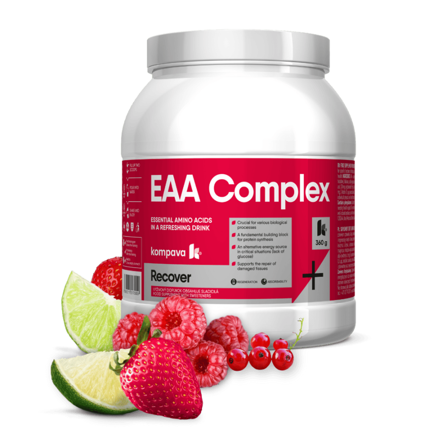 • Přispívá k lepší regeneraci po fyzické zátěži: EAA podporují regeneraci tím, že poskytují základní složky potřebné na opravu a růst svalových tkání, snižují svalovou únavu a urychlují obnovu energetických zásob.