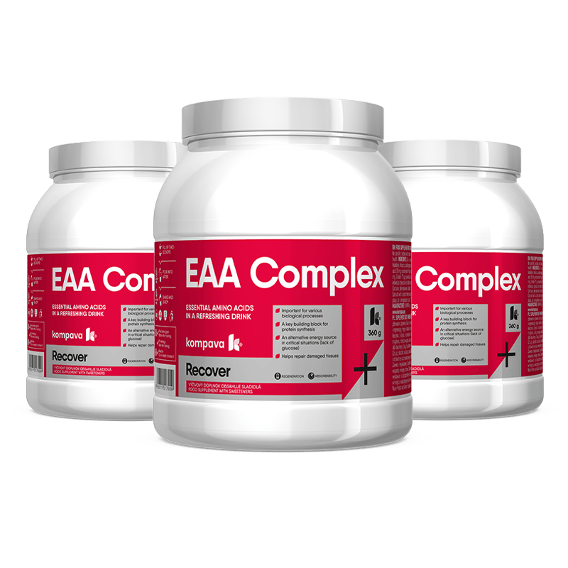 - Přispívá k lepší regeneraci po fyzické zátěži: EAA podporují regeneraci tím, že poskytují základní složky potřebné na opravu a růst svalových tkání, snižují svalovou únavu a urychlují obnovu energetických zásob.