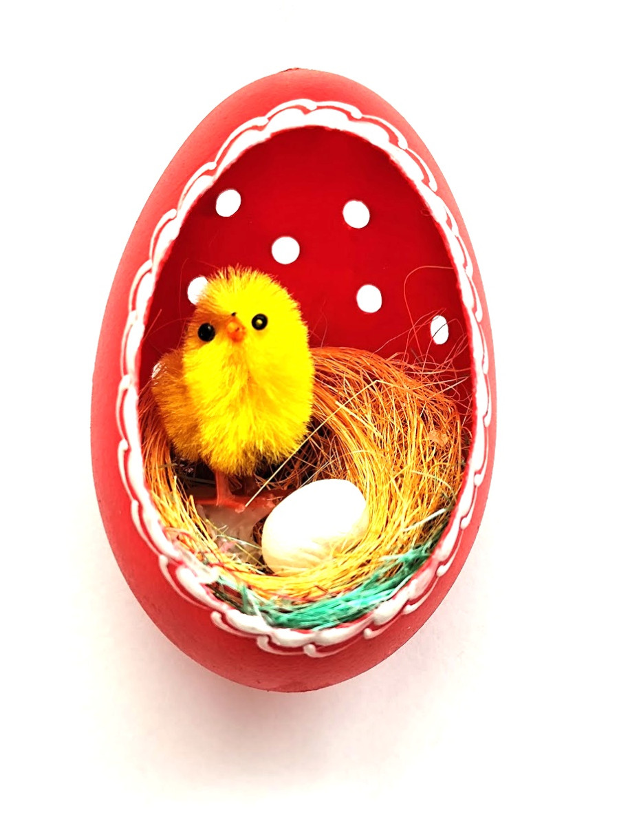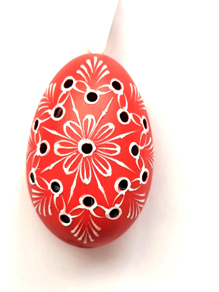 Velikonoční Husí kraslice vrtaná s kuřátkem - červený ornament