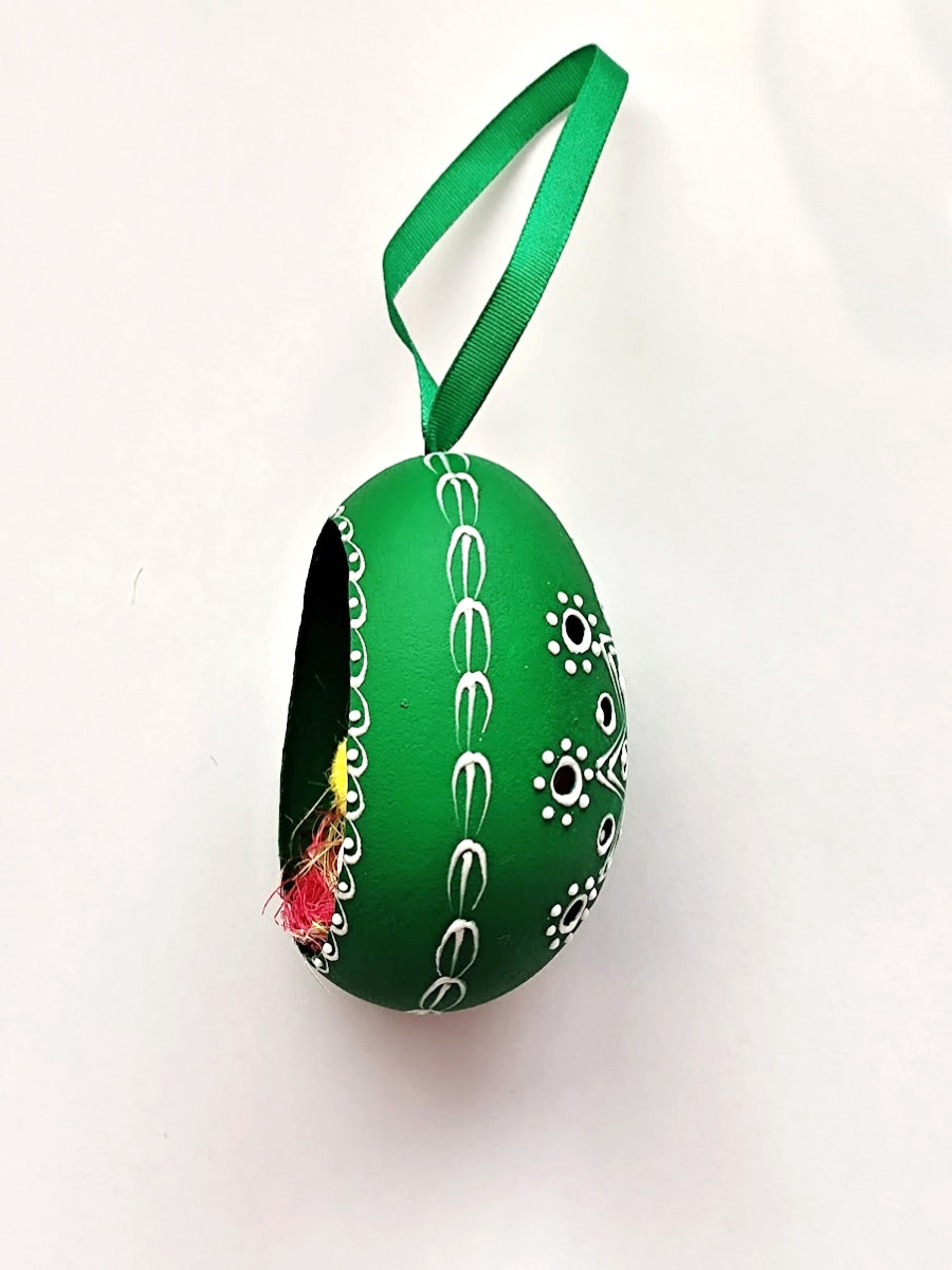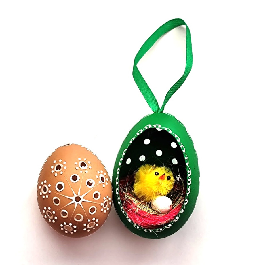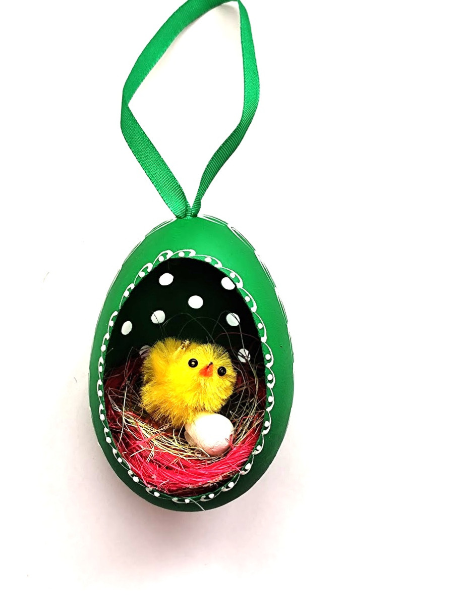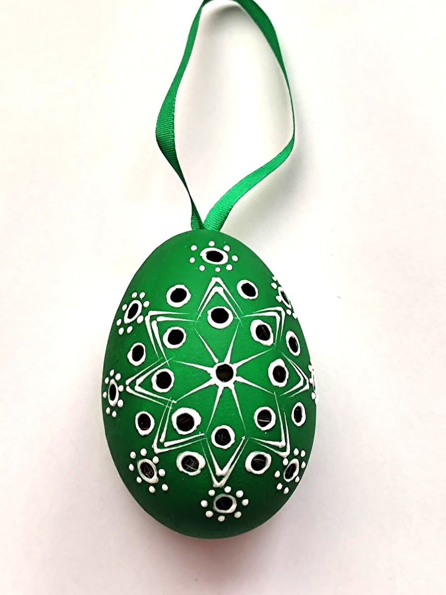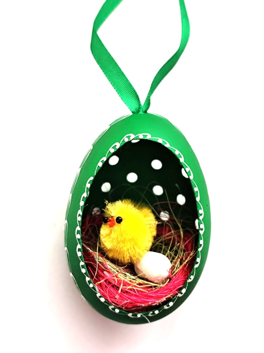 Velikonoční Husí kraslice vrtaná s kuřátkem - Zelený ornament