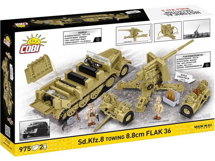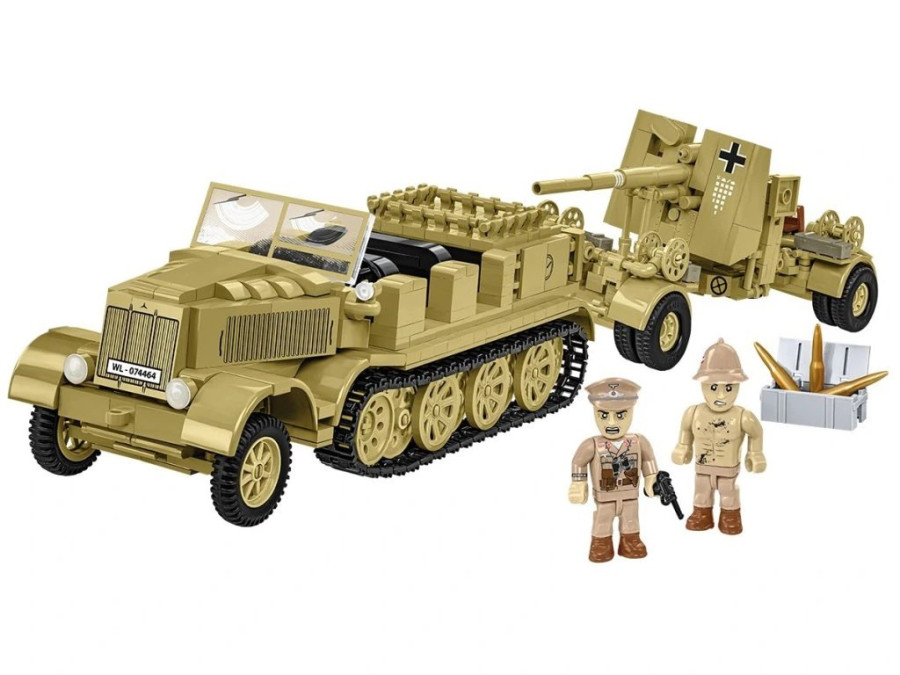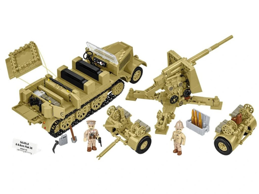 Sestavte si legendární protiletadlové dělo 8,8 cm Flak 36 na přívěsu Sonderanhänger 201 a mohutný polopásový dělostřelecký tahač Sd.Kfz. 8, uzpůsobený pro náročné podmínky pouště.