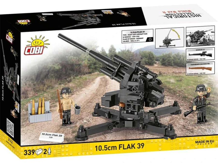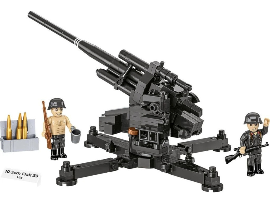 Postavte si masivní těžké protiletadlové dělo ráže 10,5 cm Flak 39, které patřilo k pilířům německé protivzdušné obrany během druhé světové války. Model v měřítku 1 : 35 je sestaven z 339 kvalitních kostek a zaujme svou velikostí, technickou propracovaností i realistickým ztvárněním.