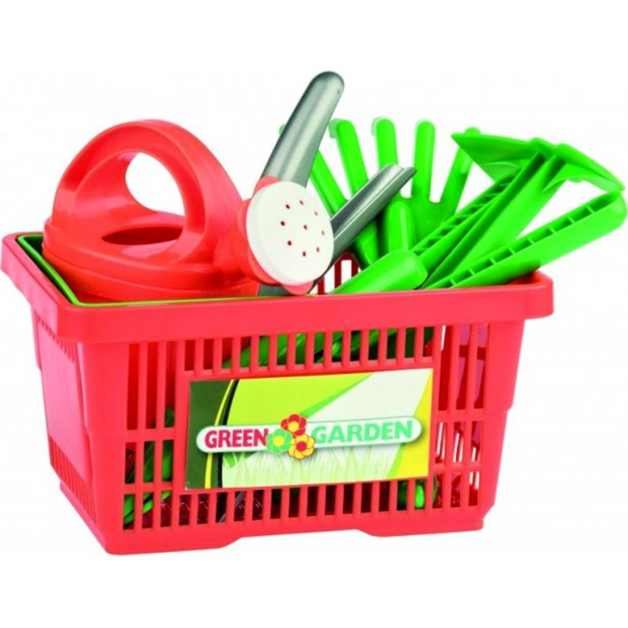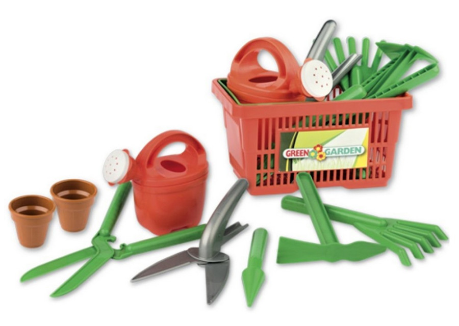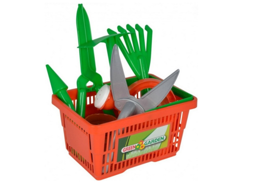 Dětské plastové nářadí v košíku se těší velké oblibě u dětí. Devíti-dílná sada zahradnického nářadí v praktickém košíku pro malé zahradníky, vyrobená z kvalitních plastů v Itálii.
