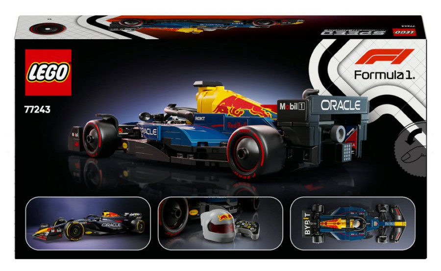 Minifigurka F1® – Tato stavebnice vozidla obsahuje minifigurku jezdce F1 v dresu Red Bull s okřídlenou helmou, kterou lze umístit do kokpitu závodního vozu F1.