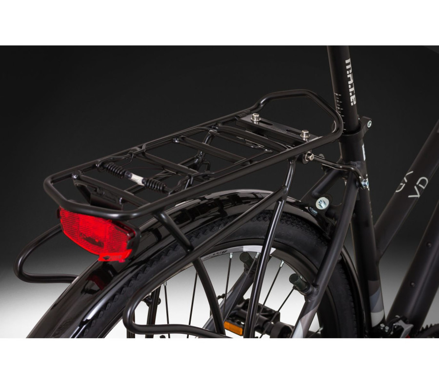 Součásti vybavy kola jsou blatníky RPZ se vzpěrami, hliníkový nosič se záklopem,  LED osvětlením (přední a zadní) a stojánkem.