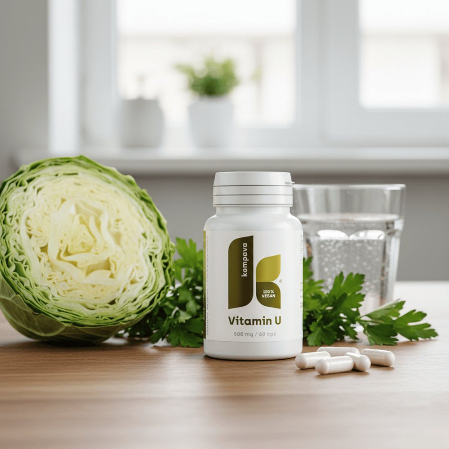 Látka, označovaná jako vitamín U, může mít pozitivní vliv na enzymatické funkce a podporu trávicího systému, zejména žaludku. Tato přírodní složka se přirozeně nachází v potravinách, jako je zelí, listy zelené zeleniny a žloutek. Jejím hlavním úkolem je udržovat optimální pH v žaludku tím, že může přispět k regulaci vylučování žaludečních šťáv. Kromě toho se na základě studie Dr. Garnett Cheney předpokládá, že přispívá k ochraně sliznice žaludku a podporuje celkovou funkci trávicího systému (1). Vitamín U se považuje za přírodní doplněk stravy, který může posilovat imunitní systém, podporovat detoxikační funkce organismu a snižovat hladinu tuku a cholesterolu v krvi.