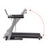 Trenažér má velkorysou běžeckou plochu o rozměrech 142 x 50 cm a pokročilý systém odpružení sestávající ze 6 vnitřních silentbloků, které minimalizují namáhání kloubů a zvyšují pohodlí při dlouhém tréninku. Díky funkci Soft Drop se běžecká plocha snadno zvedá a plynule spouští pro úsporu místa a zařízení se snadno přemisťuje a skladuje díky transportním kolečkům. Ve složeném stavu zabírá běžecký pás méně místa, což z něj činí praktické řešení.