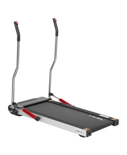 Elektrický trenažér LOOP15 je inovativním modelem pro domácí použití, který se od šedivé konkurence odlišuje dvěmi pohyblivými madly, pomocí kterých můžeme trénovat Nordic walking v klidu domova. Nordic walking zapojuje do pohybu mnohem více svalů, než běžná chůze, proto je o mnoho efektivnější při spalování tuků a budování kondice než právě běžná chůze. Madla jsou opatřeny písty, které zaručují plynulejší pohyb při minimálním odporu. Maximální rychlost LOOP15 je 6 km/h a její plynulá regulace se provádí pomocí tlačítek na koncích madel. Podlouhlý displej zobrazuje přehledně veškeré potřebné údaje (rychlost, čas tréninku, vzdálenost, počet kroků a počet spálených kalorií) Při navrhování trenažéru jsme se snažili o co nejužší konstrukci. Výsledkem je rozměr (se sklopenými madly) 147 x 77 x 14 centimetrů. Díky těmto rozměrům dokážete trenažér schovat například pod postel, nebo za skříň. Kolečka na čele LOOP15 Vám úschovu ještě usnadní.