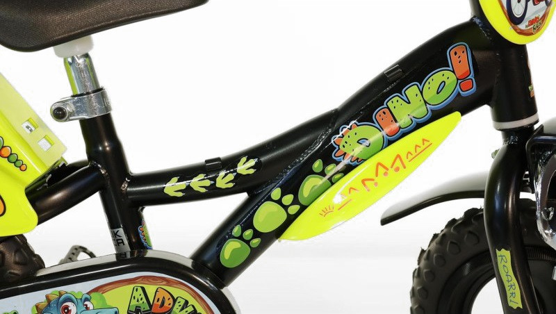 Dětské jízdní kolo Dino Bikes Dinosaur splňuje vše, co od prvního kola můžete očekávat. K tomu navíc dostanete perfektní design propracovaný do posledního detailu. Černý rám vynikne díky kombinaci žlutých a zelených doplňků a samolepek.