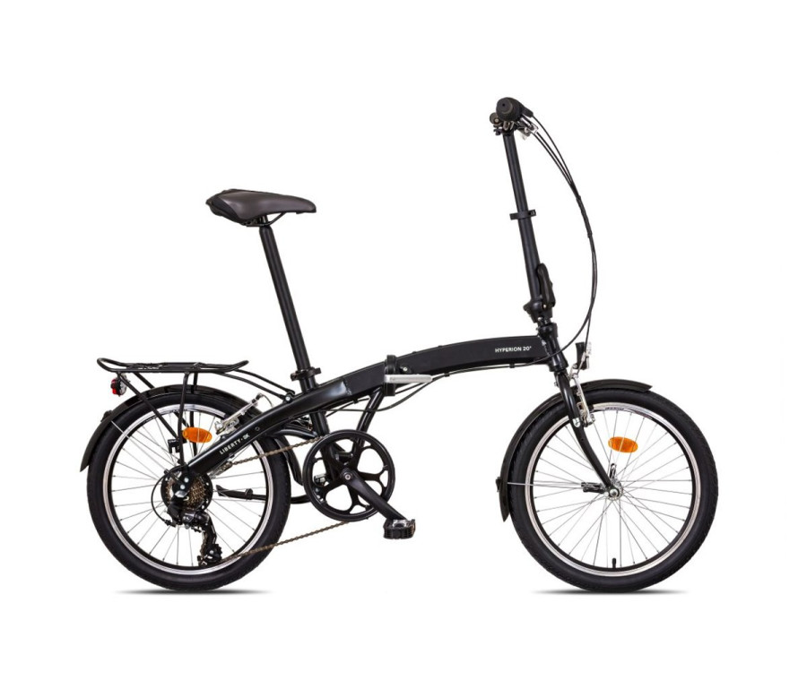 LIBERTY HYPERION 7spd. je skládací městské jízdní kolo o velikosti kol 20", velikosti rámu 11" a sedmi převody. Rám kola je vyrobený ze slitiny hliníku AL-6061 s přední pevnou vidlicí Hi-TEN.Ráfky kola jsou spevnění DOUBLEWALL ráfky, přední brzda a zadní je V-Brake.