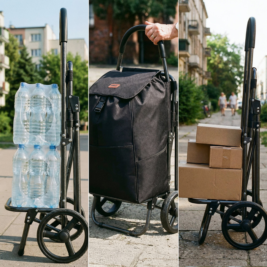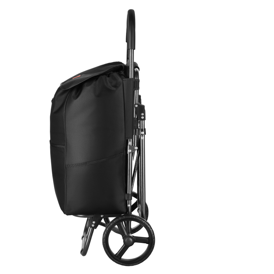 Vozík je postaven na ocelové konstrukci, která zajišťuje stabilitu při každodenním používání. Taška z odolného materiálu polyester 600D je z vnitřní strany potažena termoizolační vrstvou, která pomáhá udržet teplotu převážených potravin. Objem přibližně 40 litrů nabízí dostatek prostoru i pro větší nákup a vyztužené dno zlepšuje stabilitu a usnadňuje balení.