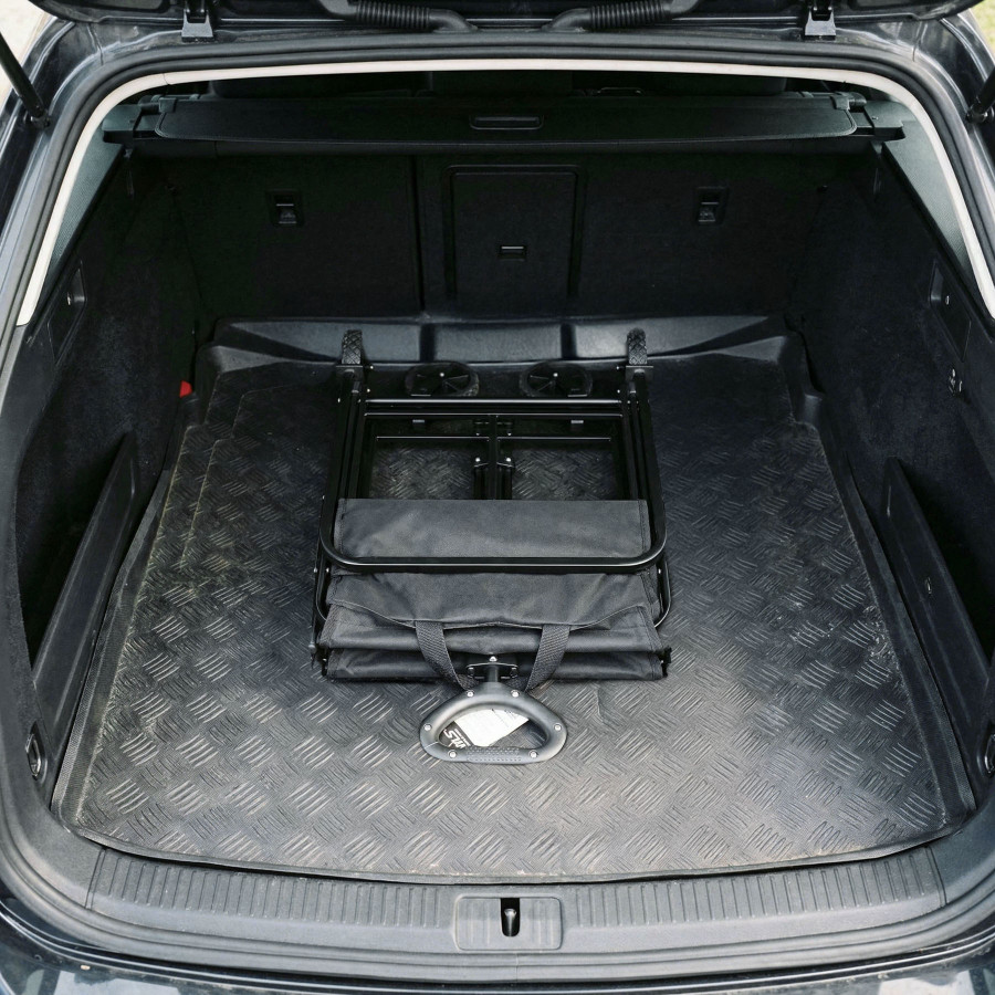 Velkou výhodou je rychlý skládací systém a jednoduchá montáž. Vozík připravíte k použití během několika okamžiků a po skončení jej stejně rychle složíte. V kompaktním stavu se snadno vejde do kufru auta a doma zabere minimum místa, takže jej můžete mít vždy připravený na další výlet nebo náročný den plný aktivit.
