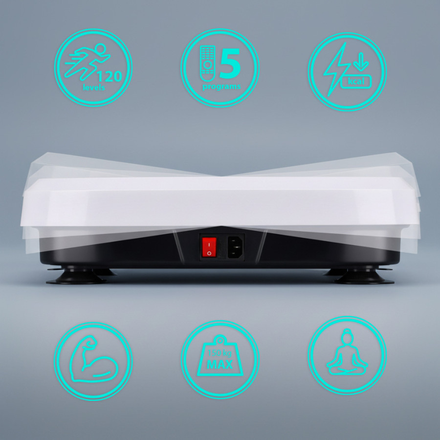 Model SVP08 generuje vícesměrné vibrace, které efektivně aktivují různé svalové skupiny současně. Intenzitu lze nastavit v rozsahu 1–120 úrovní, takže si trénink snadno přizpůsobíte své kondici. Amplituda vibrací od 1 do 2,8 cm zajišťuje účinnou stimulaci svalů i podporu prokrvení.