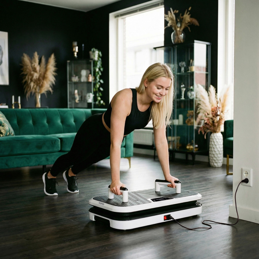 Model SVP09 pracuje v ose nahoru–dolů, čímž vytváří intenzivní vibrace aktivující i hluboké svalové skupiny. Intenzitu lze nastavit v rozsahu 1–120 úrovní podle aktuální kondice a cíle tréninku. Amplituda vibrací 1–2,8 cm zvyšuje účinnost cvičení a podporuje lepší zapojení svalstva.