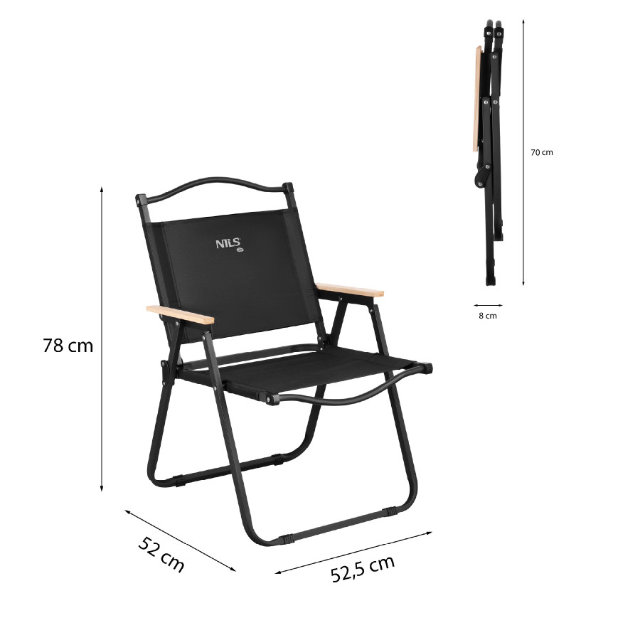 Skládací kempingové křeslo NILS Camp NC4307 černé, nostnost 100 kg