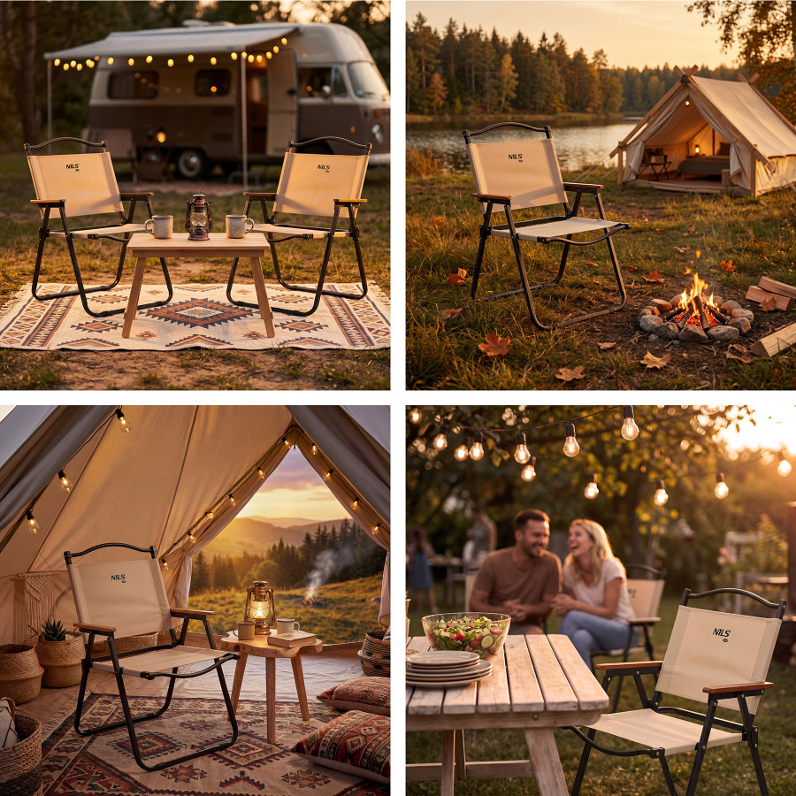 NC4307 NILS Camp je praktické skládací křeslo, které se skvěle hodí na balkon, terasu i na výlety do přírody, kempu nebo posezení u grilu na zahradě. Kombinuje pohodlí, elegantní vzhled a snadnou přenositelnost.