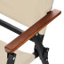 Dřevěné područky dodávají křeslu stylový vzhled a zajišťují, že se skvěle hodí jak do zahrady, tak i do karavanu. Konstrukce je postavena na pevném železném rámu s povrchovou úpravou práškovým lakováním, která zvyšuje odolnost proti každodennímu používání a pomáhá zachovat estetický vzhled po delší dobu.