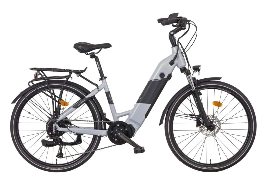 City elektrokolo Mayo e-XR Swing Tour D je moderní e-kolo, které má hliníkový rám AL6061 velikosti 16,5" s integrovanou baterií ve spodní rámové trubce. O podporu při jízdě se stará středový motor integrovaný v konzole s torzním snímačem a krouticim mometem až 80Nm.
