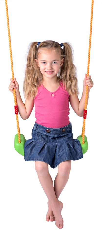 Klasická jednoduchá houpačka na zavěšení- plastové prkénko v zelené barvě. Houpačka bez podpěrek umožňuje větším dětem více pohybu a volnosti a způsobů houpání.