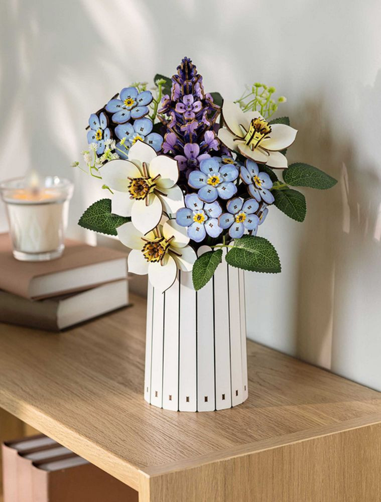Obsah balení: Vysoce kvalitní dřevěná sada na květiny a vázu Integrovaný vonný kroužek Snadno srozumitelný návod na stavbu