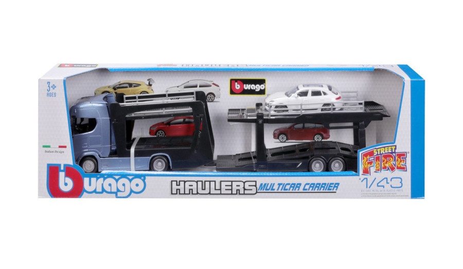 Model kamionu Multicar Carrier Scania 770S autotransport model autíčka Porsche Macan značky Bburago. Nákladní auto s návěsem má na délku včetně vleku cca. 45 cm , výšku cca. 10 cm a šiřka cca. 6 cm ( bez zrcátek). Kamion má odpojitelný vlek, pohyblivé nájezdy k nakládání osobních automobilů na návěs. Celkově lze na kamion naložit 7 osobních autíček v měřítku 1:43.