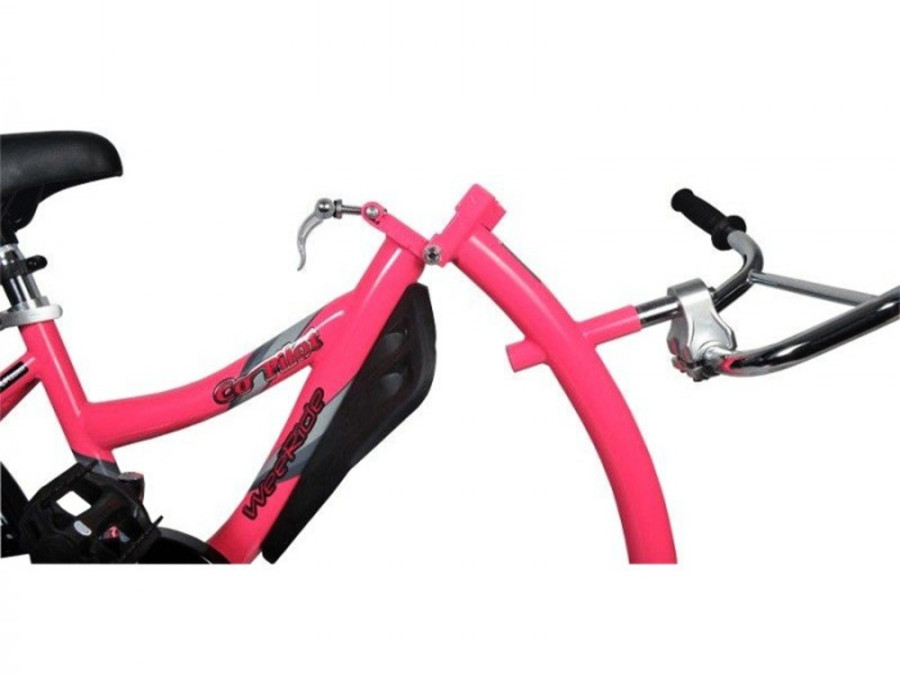 Dětské přípojné kolo WeeRide Co-Pilot pro děti od 4 do 10 let a 45 kg. hmotnosti. Kolo mám patentovaný přípojný systém ke kolu Sync Link Pivot s dvousměrným pohybem a QR (rychloupínacím) systémem.Co-Pilot je osazen kolem o velikosti 20" a má kloub pro složení kola, aby bylo lépe skladnější pro převážení.