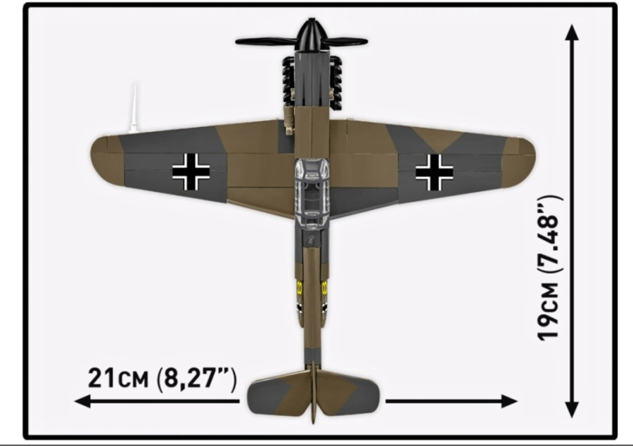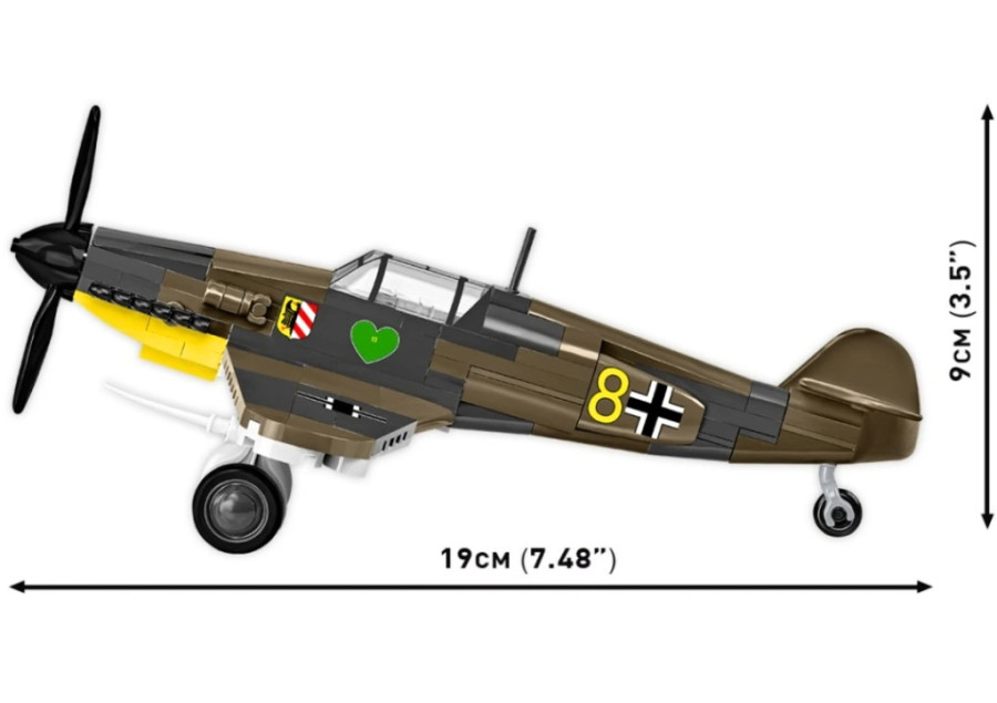 Pohyblivé prvky modelu – otočná vrtule, pohyblivá křidélka a odnímatelný podvozek s gumovými pneumatikami – zvyšují realismus a atraktivitu herního zážitku.Vysoce kvalitní potisky – odolné značení a historické detaily, natištěné přímo na kostkách stavebnice, bez použití samolepek, jsou odolné vůči oděru a vyblednutí. Model má přesně zrekonstruované barevné schéma se symbolem „Zeleného srdce“, což byl znak elitní jednotky Jagdgeschwader 54 „Grünherz“.Jasný ilustrovaný návod k sestavení – krok za krokem vás provede celým procesem montáže.