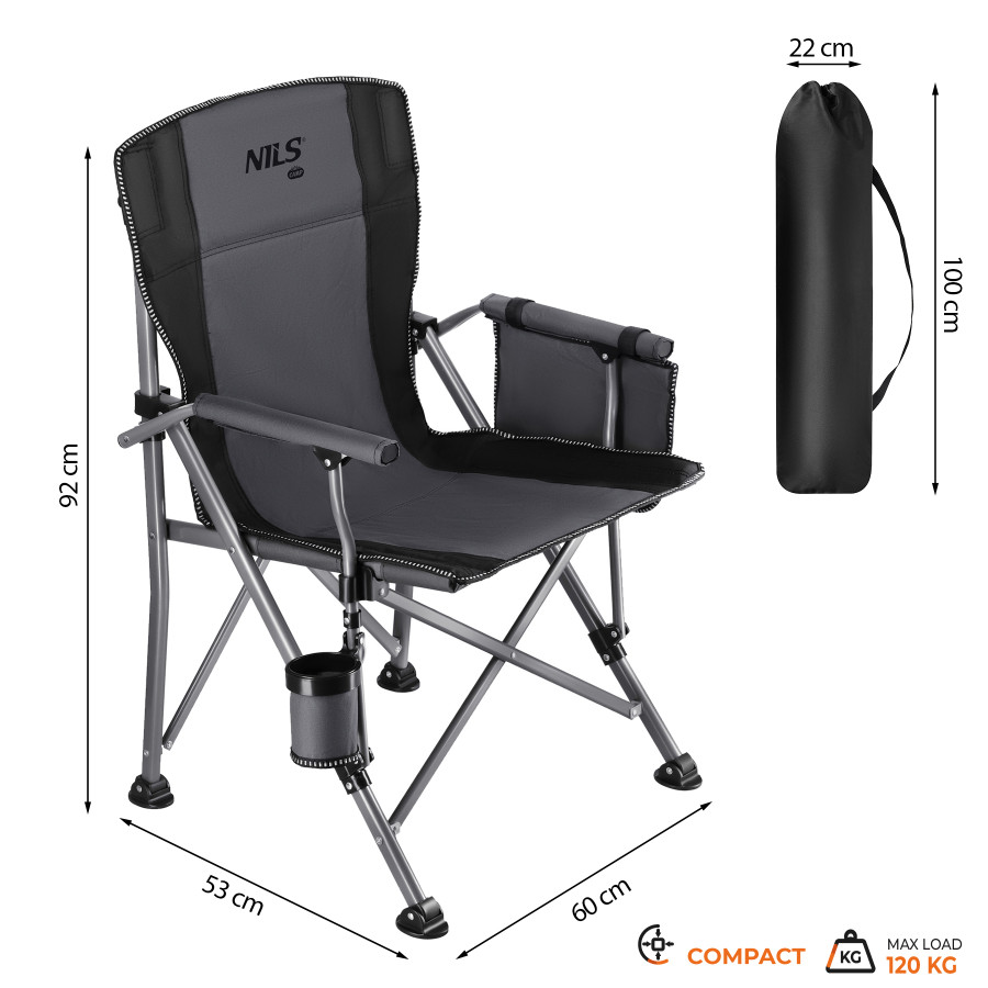 NC3309 NILS Camp je praktické a lehké skládací křeslo, které se skvěle hodí na rybaření, kempování, pobyt na zahradě i večery u ohně. Díky šedo-černému provedení má univerzální outdoorový vzhled a nabízí pohodlí všude tam, kde potřebujete rychle připravit místo k sezení.