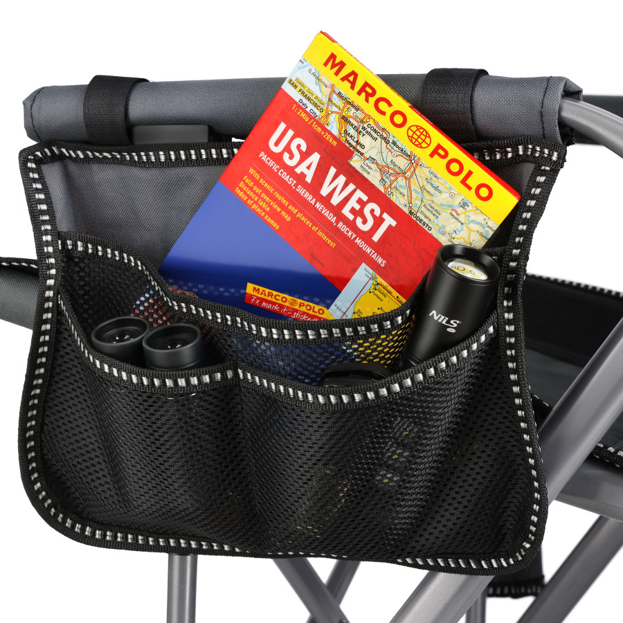 Sedák je vyroben z pevného polyesteru 600D Oxford se zátěrem, který je odolný vůči opotřebení a vhodný do náročnějších podmínek. Stabilitu zajišťuje ocelová konstrukce s práškovým lakováním, které zvyšuje odolnost a prodlužuje životnost křesla.