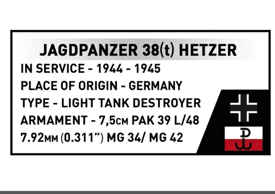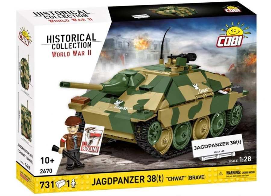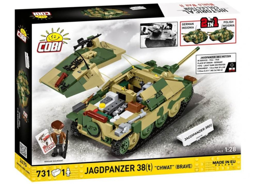 Sada Jagdpanzer 38(t) Hetzer "Chwat" nabízí příležitost prozkoumat jeden z nejneobyčejnějších příběhů Varšavského povstání, zachycený v precizně navrženém modelu. "Chwat" dokonale doplňuje další sady COBI inspirované Varšavským povstáním, jako je Panther "Pudel", obrněný vůz "Kubuś" a figurky Varšavského povstání. Tyto sady vám dohromady umožňují sestavit ucelený a dojemný příběh ze srpna 1944.