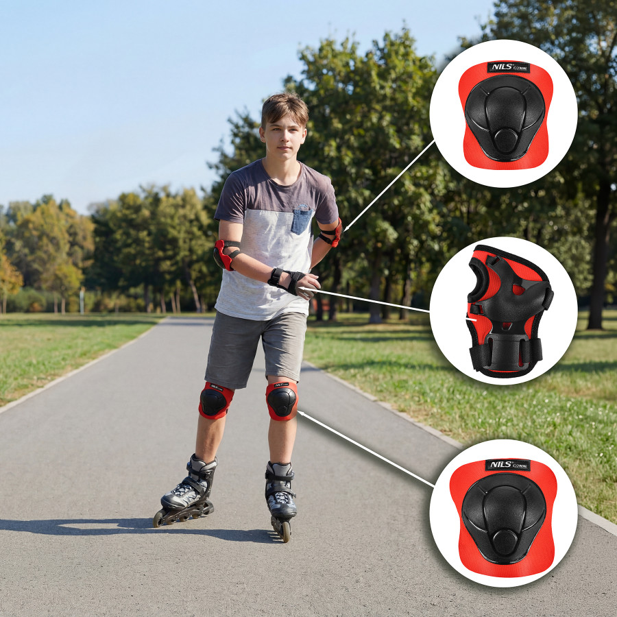 H210 NILS Extreme je kompletní sada chráničů, navržená pro všechny, kteří chtějí zvýšit bezpečnost a pohodlí při jízdě na kolečkových bruslích, skateboardu nebo koloběžce. Set chrání nejdůležitější části těla – zápěstí, lokty a kolena, které jsou při pádech nejvíce ohrožené.