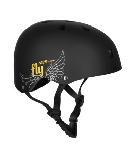 NILS Extreme MTW001 FLY je kvalitní helma typu „ořech“, navržená pro bezpečnou jízdu na kolečkových bruslích, skateboardu a koloběžce. Moderní černý matný design se symbolem křídel dodává helmě stylový vzhled.
