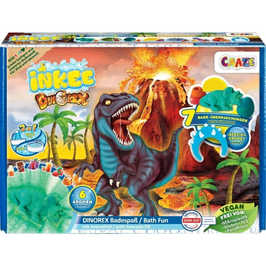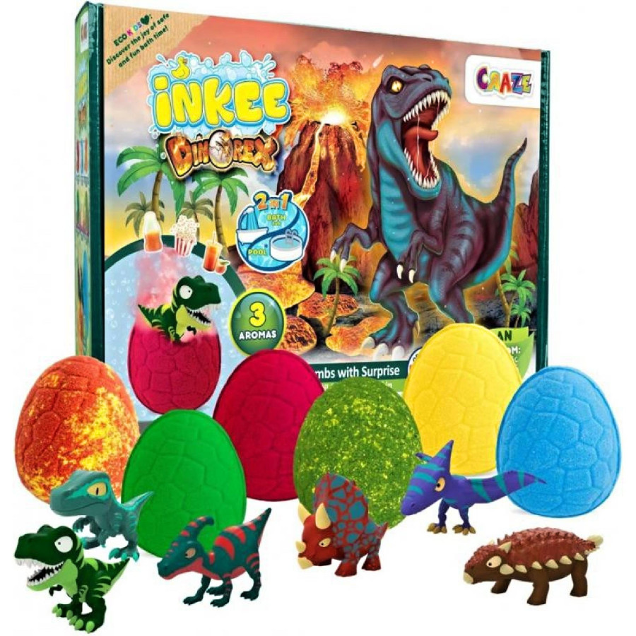 V krabici najdete 7 jedinečných předmětů včetně 4 různých bomb do koupele, koupelového prachu, sypké soli, kapek do koupele a roztomilého doplňku. Dárková krabička INKEE Dino nabízí širokou škálu efektů včetně plovoucích bomb do koupele, perlivých bomb do koupele, pěnivého prachu do koupele a praskacích solí. Roztomilá korunka z dinosauří houby učiní váš zážitek z koupání ještě zábavnějším.