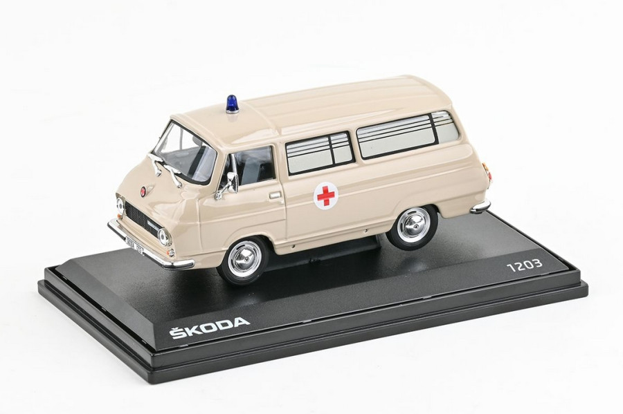 Model auta Škoda 1203 Sanitní Vůz (1974) v měřítku 1:43 vyrobený českým výrobcem modelů Abrex. Barva modelu uváděna výrobcem je bílá (sanitka). Model autíčka je vyrobený z kovu a plastu. Autíčko je dodáváno v plastové průhledné dárkové krabičce a je vhodné jako dárek pro milovníka nebo majitele automobilu značky Škoda.
