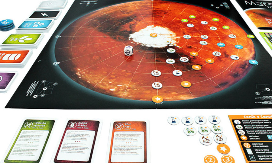 Ve hře se vydáte na osídlení Marsu: dobýváte severní pól, zajišťujete zásoby vody, stavíte laboratoře a zakládáte nové stanice. Cílem je strategicky rozšířit svou kolonii a dostat se co nejblíž k vítězství správným plánováním a pořadím tahů.