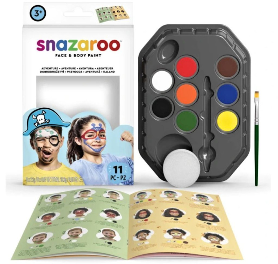 Profesionální sada barev na obličej Snazaroo Dobrodružství je bezpečné, snadno smývatelné a vysoce kvalitní barvy vyrobené v Anglii. Ideální pro dětské párty, karnevaly i profesionální líčení.