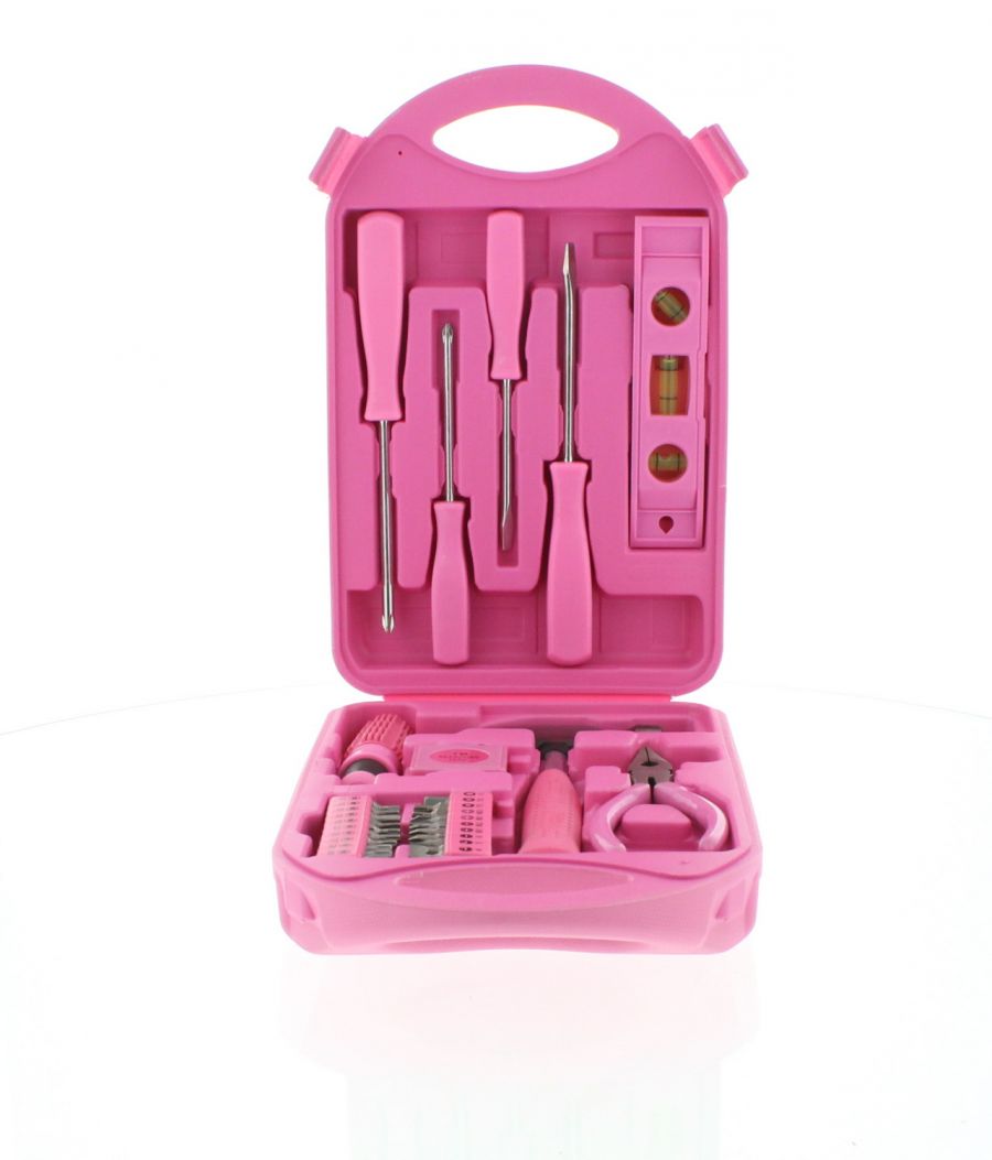 Sada růžového nářadí pro ženy v růžovém kufříku. Tato sada potěší každou obdarovanou ženu, jelikož sada nářadí nemá jen hezký vzhled, ale padne do ruky kyždé ženy a je plně funkční.