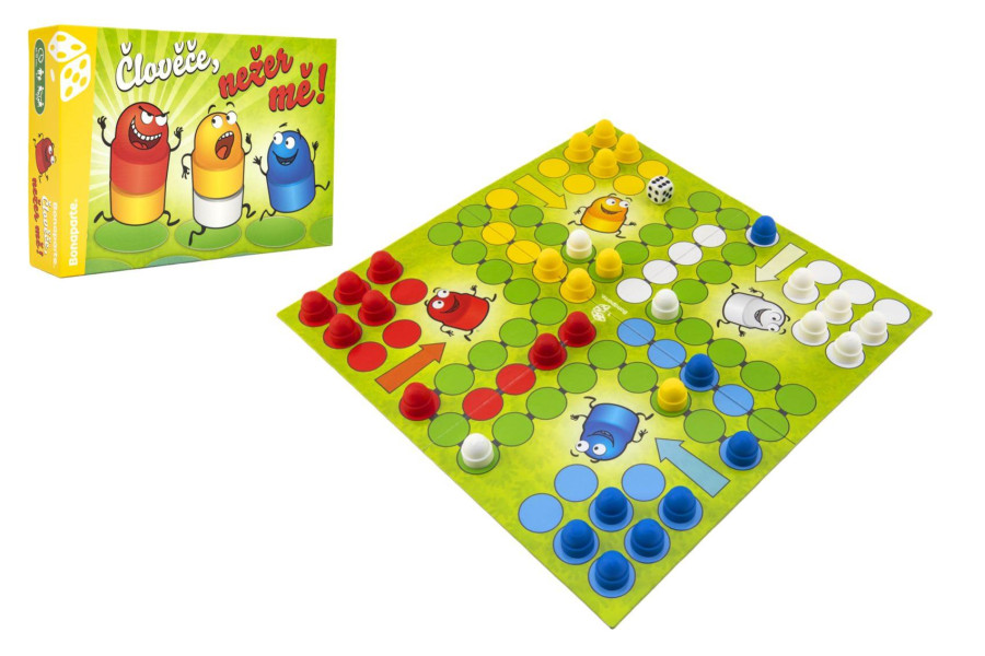 Člověče, nežer mě ! je nová varianta klasické verze Člověče nezlob se! , která přináší větší zábavu do hry s hladovými figurkami místo klasických pinčlíků. Člověče , nežer mě ! je zábavnější, napínavější, akčnější naž legendární Člověče, nezlob se!.