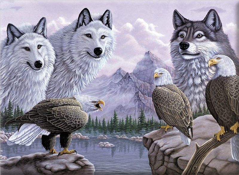 Motivem tohoto obrázku je Vlci a orli . Pokud se ptáte, proč malování podle čísel, tak obrázek je rozdělen na jednotlivá očíslovaná políčka, barvy mají také čísla a jen vybarvujete políčka podle čísel.