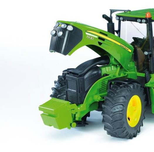 Traktor John Deere 7930 je propracovaná a mechanicky funkční hračka Bruder. John Deere 7930 má otevíratelný motor, zasklenou kabinu s otevíratelnými dveřmi a výškově nastavitelné závěsné zařízení.