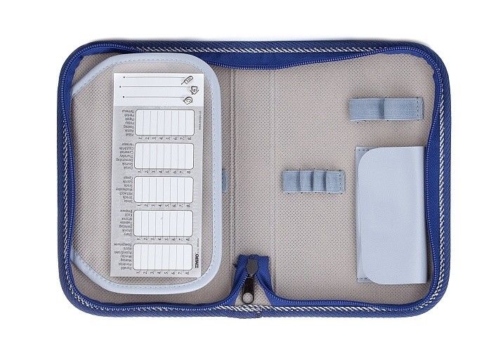 Set tvoří školní batoh Amor s anatomickými zády, sáček s kapsou na zip, penál s jednou klopou a etui.