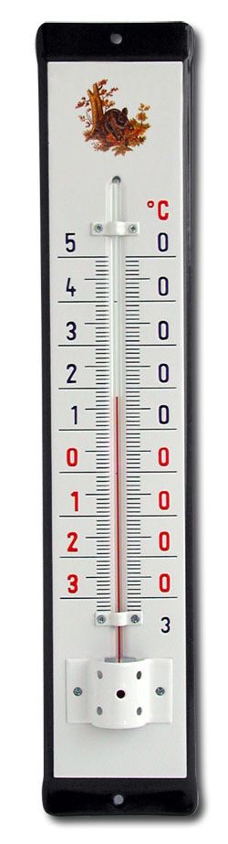 Venkovní velký černobílý smaltovaný teploměr s motivem tetřeva a prolisem je určen pro venkovní i vnitřní použití.