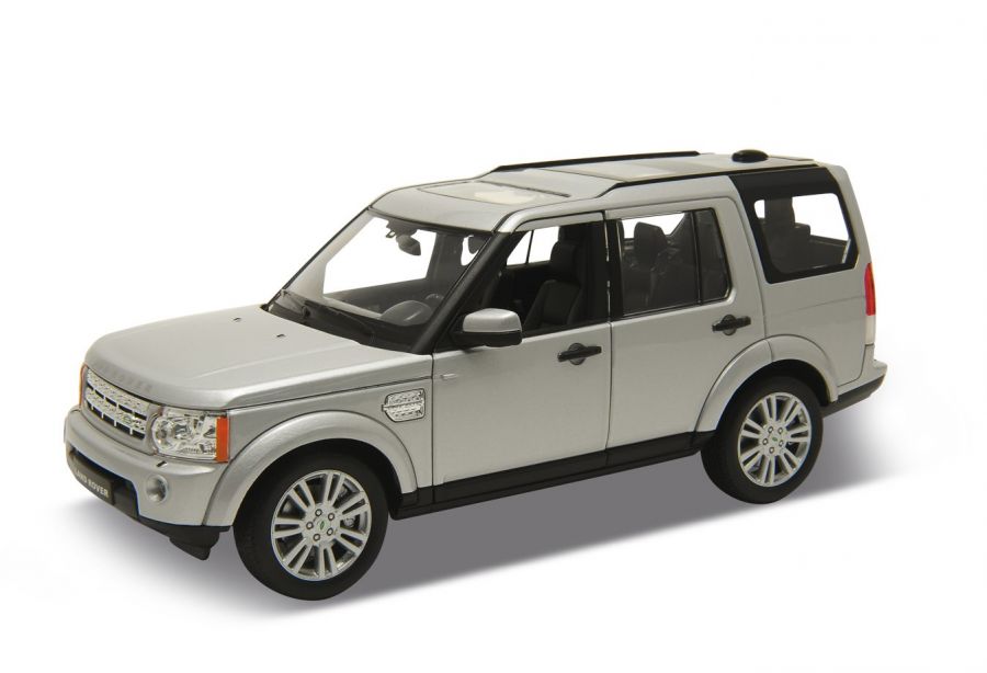 Kovový model auta Land Rover Discovery 4 stříbrný v měřítku 1:24 značky Welly. Model má detailní zpracování karoserie včetně interiéru automobilu. Na modelu se otvírají přední dveře a kapotu.