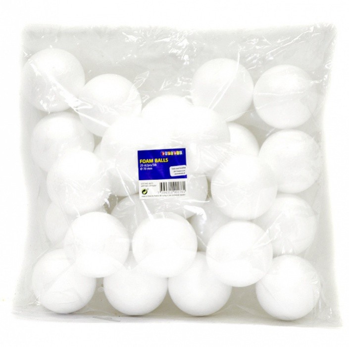 Koule jsou vhodná i pro tvorbu do školy nebo školky. V sadě naleznete 25 ks polystyrenových koulí velikosti 5 cm.