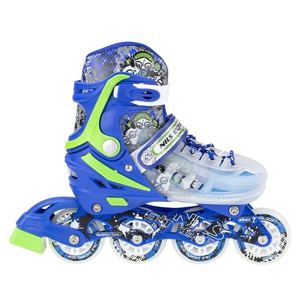 Kolečkové brusle Nils Extreme NJ1812A sloužící k rekreační jízdě pro začátečníky a mírně pokročilé. Lehká a odolná bota zajišťuje bezpečnost při jízdě. Jedná se o model s nastavitelnou velikostí, kdy každá brusle má na výběr z 5 rozměrů. Pomocí jednoduchého řídicího systému lze snadno a rychle nastavit velikost boty na noze uživatele.
